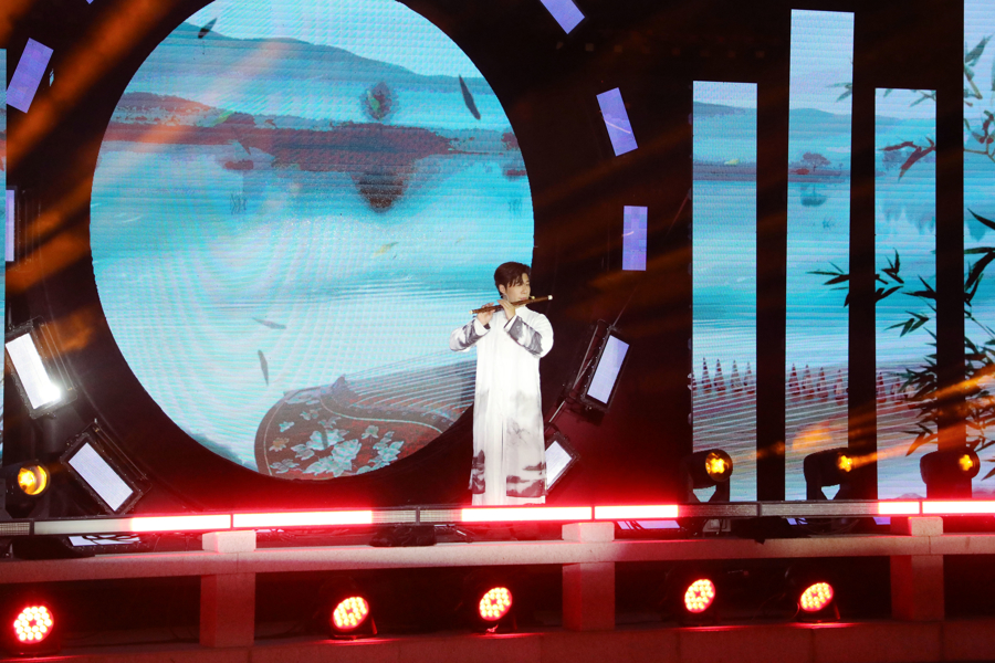 夜幕初垂,南山雅集主会场氤氲出如梦似幻的江南意境。演出以《兰亭序》竹笛独奏开场,清泠音符如墨滴入水,晕开千年文心;萧与古筝合奏《妆台秋思》则似将杜丽娘的婉转情思洒落廊桥流水。古筝独奏《浮光》以现代和弦重构古典意象,五重奏《起风了》用民乐演绎流行旋律,笙与琵琶《凤凰展翅》则以欢腾节奏点燃全场,展现传统民乐在当代的无限可能。